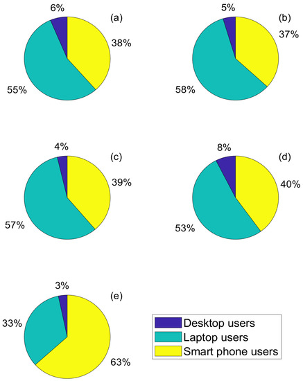 The results showed that the students from the IT School opted to use the combinations of laptop and smartphone (38%), laptop only (31%) and smartphone only (11%) in this order, as shown in Figure 2d. The overall device analysis in Figure 3d showed that students depended on laptop computers (53%), smartphones (40%) and desktop computers (8%).