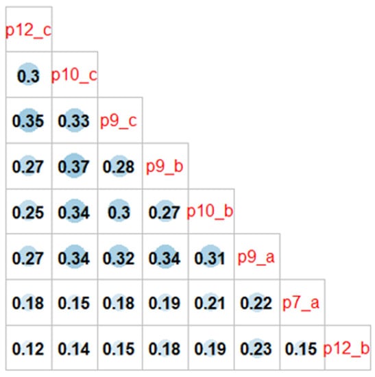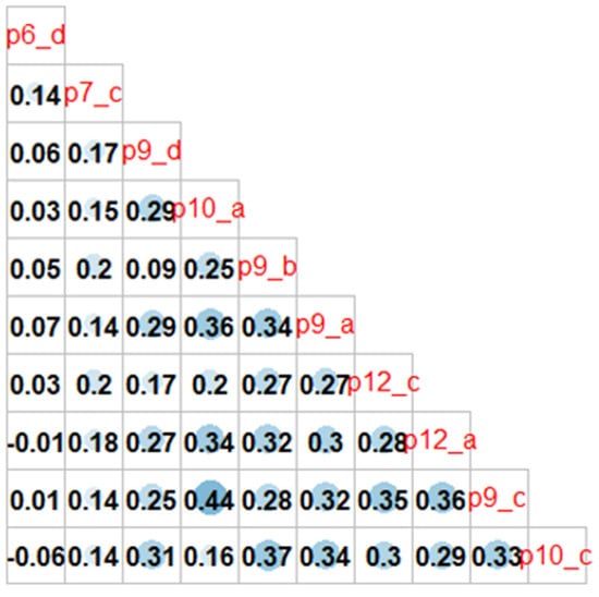 To identify the correlations between the different variables captured by the questionnaire, indicators or dummy variables were created to capture the responses of the teachers surveyed. Thus, a dummy variable was created for each response option for each question. With the variables created, a new base was constructed in order to speed up the calculations and facilitate their handling. The Kolmogorov Smirnov test (with a variation of the Lilliefors test to increase robustness) was used to verify whether the available variables are normally distributed or not. It was decided to use this type of test since it is more effective than the Shapiro–Wilk test when working with samples of more than 50 observations. The result of this test for each of the variables shows that they are not normally distributed and, therefore, the correlations made between them should not be made under the parametric Pearson correlation model. Therefore, the correlations were calculated using the nonparametric Spearman rank correlation method with a confidence level of 99%.