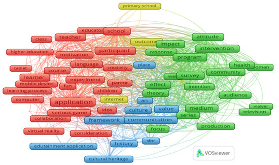 The initial analysis was performed using VOSviewer that classified related topics for study and these are plotted in Figure 1. Based on this principle, we carefully delineated the subject to then detect trends, authors and even transformations in the approach to a certain object of study. In this case, the review took as a starting point the scientific production regarding coexistence, otherness, communication and edutainment.