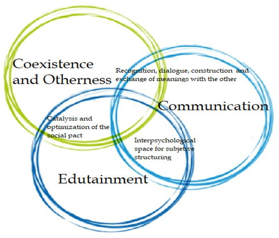 Schematically speaking, this paper presents a theoretical background that includes the variables related to the research work, i.e., coexistence, otherness, communication and edutainment, strictly related to the objective of the work. Then, the methodology and the procedure carried out are explained. It included both a systematic and a content analysis technique using ATLAS.ti software and the Excel program. Finally, the results are presented, the latter allowing to redefine the term convergence to represent an interdisciplinary theoretical construct.