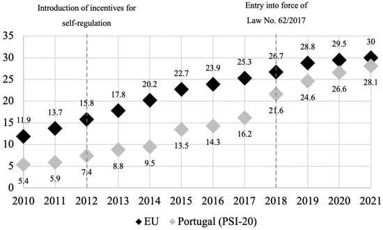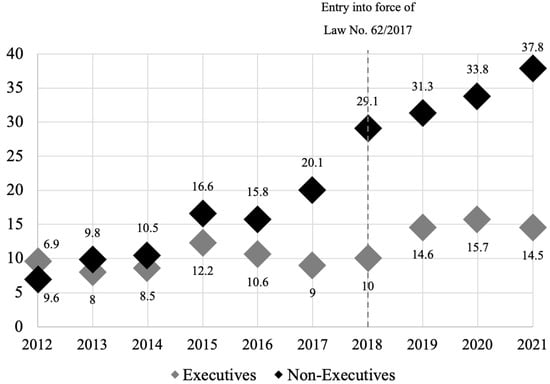 - Law No. 62. 2017. Law No. 62/2017 of 1 August—Balanced Representation Regime between Women and Men on the Management and Supervisory Bodies of Public sector Companies and Companies Listed on the Stock Exchange. Available online: https://dre.pt/home/-/dre/107791612/details/maximized (accessed on 2 August 2021).