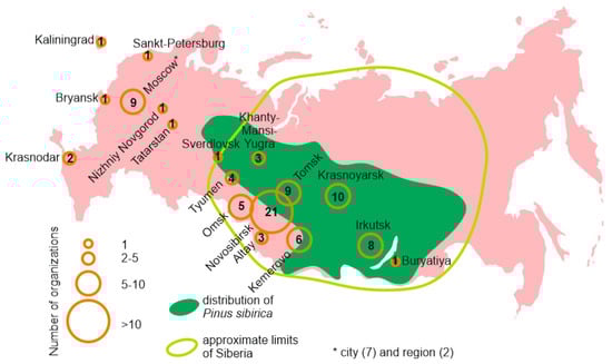 For the purposes of the present study, information about all Russian firms with the words “Siberian” and “cedar” in their names was collected from the online database “SPARK” (Interfax 2022). This database is an open resource summarizing the basic information about thousands of firms registered in Russia. This database is very comprehensive, and it is updated regularly. Thus, it serves the purposes of the present study ideally. A total of 87 firms using the expressions “Siberian cedar” or “cedar of Siberia” in their names were found. The exact names of firms, their geographical affinity (place of registration), and their activities (industry) were recorded. The parameters of financial performance are not employed because this information is confidential. To avoid any occasional challenge to the firms’ reputation, they are considered in this paper anonymously (anyway, they bear similarly-styled names such as “Siberian cedar Ltd.”).