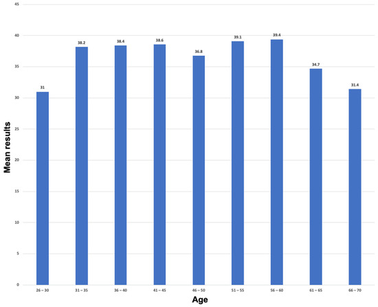 Regarding age, there were some interesting results that are worth exploring in detail. On the one hand, no statistically significant differences were observed; however, both the youngest (26 to 30 years old) and the oldest (61 to 65 years old and 66 to 70 years old) groups of teachers were the age groups with the greatest weaknesses. The age groups from 51 to 60 had the highest average scores. These values are consistent with those of several other studies (Dias-Trindade and Santo 2021; Dias-Trindade et al. 2021); however, in the study by Mora-Cantallops et al. (2022), the same was not true, and a clear decrease in digital competence with age was observed (Figure 5).