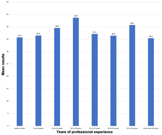 Again, the extremes in level of experience were associated with the weakest results: teachers with more than 36 years of service, or less than five, had average scores of 35.4 and 35.7, respectively. Teachers with between 16 and 20 years of teaching experience had the highest average score, 43.7 points. However, once again, the results were very similar and there was no apparent correlation between digital competence and teaching experience. These results are similar to those cited in the PISA report. If younger teachers lack experience and older teachers’ technical knowledge, perhaps teachers with between 16 and 20 years of experience combine greater digital competence with the security of several years of experience.