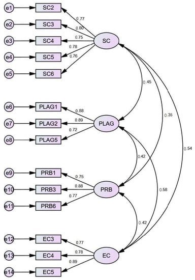 The final four-factor model with a path coefficient has been presented in Figure 1.