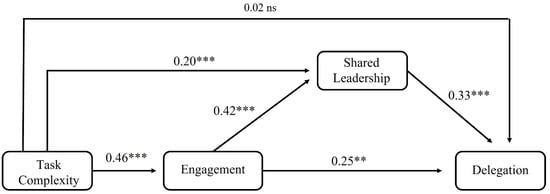 Engagement and shared leadership have a serial mediating effect on the relationship between task complexity and delegation.