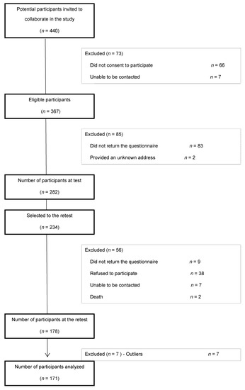 In an effort to involve participants from the community and to promote heterogeneity of the sample, individuals were recruited from two different sites, namely schools and an adult day care centre from the north of Portugal, based upon three inclusion criteria: individuals being older than 18 years; capable of speaking, reading, and writing in Portuguese; and not planning migration in the short-medium term. Initially, the study was presented in detail to possible participants, and only those that signed an informed consent were assessed.