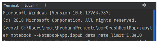 According to step 2 of the aforementioned algorithm, the Jupyter environment must be properly initialized. The library may not work correctly due to the need for loading a large amount of data. To avoid this problem, the config value, iopub_data_rate_limit, must be changed by entering a specific command (Figure 3) (Lu et al. 2021).