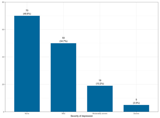 The severity of depression in the sample based on PHQ-9 standards. n = 144.