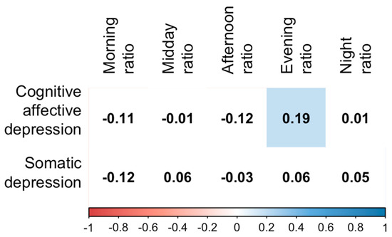 We also tested the time period of activities. Only the evening period correlated with the cognitive-depression scale (see Figure 5).