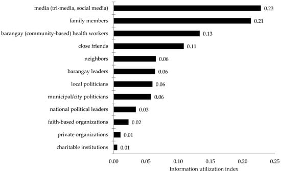 On the other hand, information-seeking strategies are critical for understanding the vaccination decisions of participants; hence, the use of channels of information is a critical factor in all decisions. The information utilization index (Figure 1) indicates the intensity of use of the media as a source of information regarding COVID-19 and the ongoing vaccination activities. The information survey participants received from the media are used in their vaccination decisions.