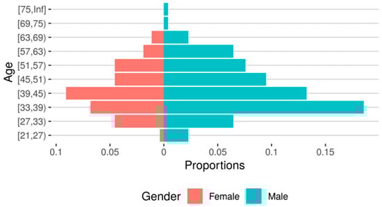 The first answer to the survey was recorded on 16 December 2016 and the last on 13 February 2018. Scientists belonged to 18 European and American countries. The survey had a total of 305 respondents, most of all (264) replied all of the questions under consideration. Only the replies of those interviewed who were working alone, and in a team or only in a team were considered. In terms of gender, 4 persons preferred not to inform (1%), whereas 101 were female (34%), and 200 were male (66%). Figure 2 displays the demographic pyramid of the survey.