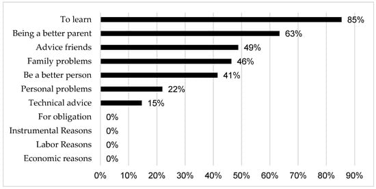 Motivation to participate in the programme. This evaluation consists of an open-ended question (Why do you want to participate in this training?), which was aggregated into 12 categories to assess the reasons why parents decided to participate in the programme ().