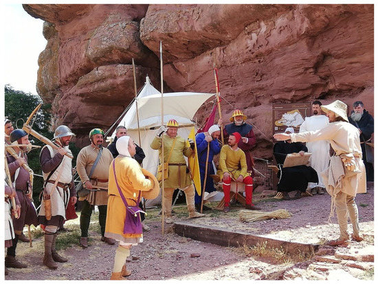 It is very positive that historical reenactment can be carried out directly on the scene, where it takes place. Heritage sites are ideal for explaining and understanding historical events and periods (Sebares Valle 2017), and contemplation and experimentation play an extremely important role in generating emotions and feelings that help us recognize the asset and identify with it (López Cruz and Cuenca López 2014; Felices de la Fuente and Hernández Salmerón 2019). This interest brings us closer to this heritage so we can overcome that image of opacity typical of cultural assets (Bardavio and González Marcén 2003).