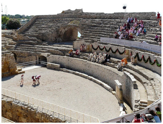 In Spain (Español-Solana 2019c), the best-known project of this kind is possibly “Open for works” by the Santa Maria Cathedral Foundation, in Vitoria (https://www.catedralvitoria.eus/). This is not a historical reconstruction model per se, but it successfully echoes the philosophy of this new dissemination and investigative trend in heritage. There are other important projects that schools are gradually recognizing as valuable means for history and heritage education, for example, Tarraco Viva Festival, which takes place in Tarragona every year, and Emerita Lvdica, in Mérida (Figure 2). The former was devised as an attraction for Tarragona’s candidacy to become a World Heritage Site and it is now the city’s most important heritage management project and, undoubtedly, the best known and most imitated in Spain. It attracts almost 200,000 visitors every year and its main purpose is to spread awareness of the Roman legacy on the peninsula. In Mérida, over 18 reenactment associations gathered in 2021, involving the local population and attracting many visitors from elsewhere. These are just a few general examples that provide clues on how to tackle any educational project through organizational complexes, mostly managed by local authorities, in which historical reenactment is the primary educational technique.