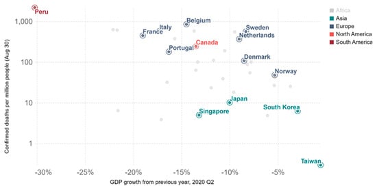 Figure 3 illustrates this. Except for the United States, which has suffered relatively little economic damage despite the large number of COVID-19 deaths in that country, the economic growth rates of the Asian middle power countries that are controlling the number of deaths from the coronavirus are showing comparatively minimal declines. As