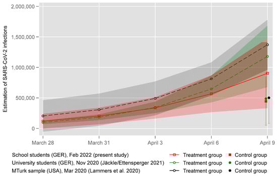Jäckle and Ettensperger replicated this analysis among German first-year university students in November 2020 (after about 10 months of living with the pandemic), thus lowering the chances of finding an EGB.1 However, they still found their participants to be similarly unable to predict the number of individuals infected with COVID-19 as the participants in Lammers et al. Nevertheless, according to their results, this EGB could also be reduced by a simple educational intervention that helps participants conceive the exponential progression of contagions more easily. Furthermore, the participants who received these educational nudges showed a considerably higher approval rating for contact restrictions. This effect has also been examined with respect to different analytical techniques and the inclusion of several socio-political controls (e.g., political left-right position, general social trust, or the perceived burden of the COVID-19 pandemic), and it turned out to be robust (Jäckle and Ettensperger 2021, pp. 816–17).