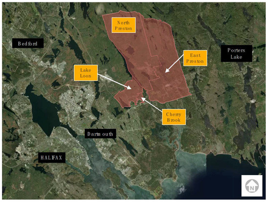 Regional map of the study area’s four communities: North Preston, East Preston, Cherry Brook, and Lake Loon.