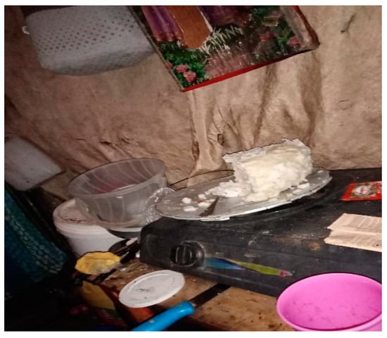 The physical environment was a key concern to CHHs participants. They reported living in dirty environments that weighed heavily on their minds and mental wellbeing. They also highlighted living in an environment characterised by exposed electricity wires that were used in illegal electricity connections, open sewage, and chemicals that produce a pungent stench. They perceived such environmental conditions where they lived as worse compared to other parts of the informal settlement in which they resided, and were ostracised by their peers due to their dirty living conditions. Consequently, their living environments impacted their own and their families’ physical health and wellbeing (human dimension) and influenced their subjective wellbeing as described in the photos below (Figure 1 and Figure 2).