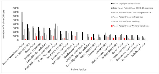 To answer these questions, a mixed methodology has been used. First, the collation of data from freedom of information requests (FOIs) from police services in the United Kingdom is used to gather data regarding the impact on capacity and capability. The Freedom of Information Act 2000 provides public access to information held by public authorities, including police services. The Act covers any recorded information that is held in England, Wales, and Northern Ireland, with a legal obligation to reply unless specific criteria are present. As alluded to in the previous section, this method was used as there was no openly accessible information regarding the impact of COVID-19 on the capacity of the police service and as such, it was the only route available to access these data. FOIs were submitted to all UK police services requesting data that outlined the number of police officers and staff absent at any stage due to contraction of COVID-19, the requirement to self-isolate or shield at home. In addition, data for the number of staff that were able to work from home whilst absent were also requested.