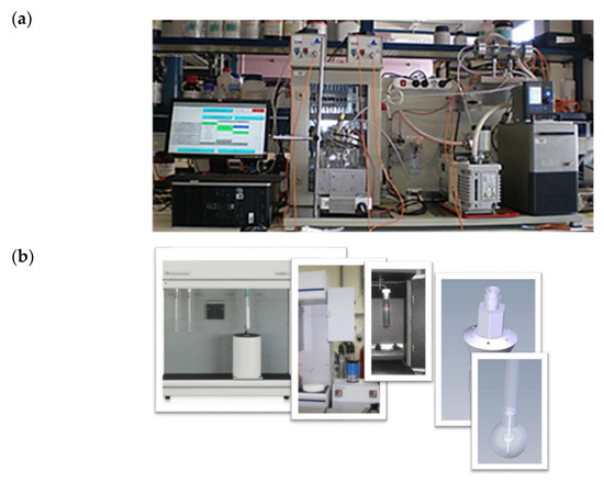 (a) A third-generation calibration system designed by the IC team at the UPNA; (b) a fourth-generation calibration system (adapted from a Micromeritics adsorption device for calibrating an FOS), currently in testing.