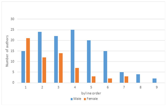 Number of male and female authors by byline order.