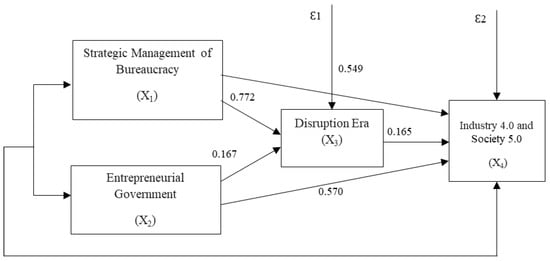 4.3. Discussion on Entrepreneurial Government’s Significant Influence on the Era of Disruption, Industry 4.0 and Society 5.0 in Indonesia