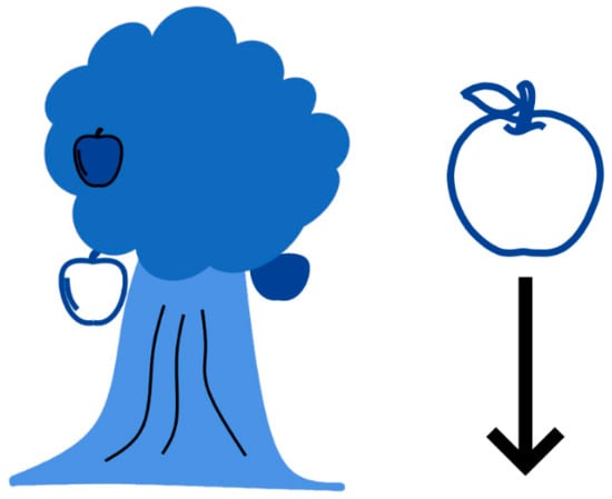 Now, the answer to this last question does not depend upon the stated political objective that the policy is attempting to achieve; it is, therefore, important to notice that whatever the objectives that are stated in association with a given policy, this has no impact at all upon the real-world effects that that policy produces; this consideration may lead us to formulate an interesting thought: maybe, when policies do function correctly, it is because they are representing in human language the real-world phenomenon that would take place regardless of them; this is an important alternative explanation as to what policies do in relation to social systems: when they work, they may not be causing the phenomenon that they describe; but rather, they might be correctly describing a phenomenon that takes place regardless and despite them. The failure of the policies for the management of migration is established in the literature (De Haas 2007); although it has also been argued that the failure of migration policies concerns their lack of effectiveness concerning their declared intentions, and it is unknown whether the concrete implementation of policies is what determines their efficacy (Czaika and De Haas 2013). We will get back to the distinction between declared intentions and actual implementation of a policy in a moment. Let us now, instead, consider the case in which the legislator attempts to regulate the behaviour of a falling apple (see Figure 3).