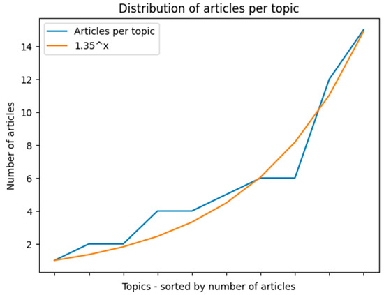 It can be noted that the relative majority of the articles fall into the last topic; indeed, it appears that the distribution follows an exponential law (Figure 8), with almost half of the articles concentrated on the two most populous topics.