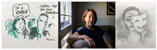 | 1 | See details on the project and exhibition here: https://ourcarejourney.wordpress.com (accessed on 22 June 2022). |