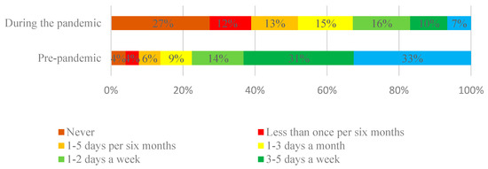 Trip frequency with public transport bus before and during the pandemic.