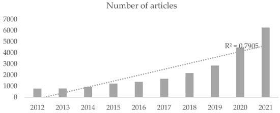 Google Scholar database articles containing keywords “ESG investing”, 2012–2021.