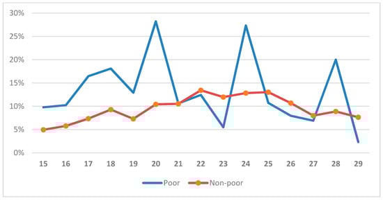 Youth poverty differs from adult poverty in that it can have different causes and effects. Two main causes can be identified. The first one concerns life-course events: the end of studies, professional integration, residential independence, and living as a couple or building a family (Dewilde and Raeymaeckers 2008). These events play a significant role in shaping vulnerability to poverty. The second one is about the intergenerational transmission of poverty status. In fact, the poverty experienced by youth is mainly linked to their household background and childhood deprivation (Boudarbat and Ajbilou 2007; Iakōvou and Berthoud 2001; Yassine and Bakass 2022). Moreover, the impact of youth poverty on long-term human capital accumulation is well recognized, thus, youth poverty represents missed opportunities to acquire skills in school or on the job, or good health habits that can be extremely difficult to remedy (Bremer 2018). Dewilde and Raeymaeckers (2008) argue that all individual and collective factors such as education level, economic activity, age, family structure, and household size have a substantial, unidirectional, and significant effect on the risks of being poor. In addition, the role of institutional indicators and economic context as major determinants of poverty among young people is widely recognized (Braziene and Merkys 2012; Bremer 2018; Iakōvou and Berthoud 2001).