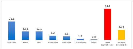 Multidimensional poverty includes the multiple factors that constitute poor youth’s experience of deprivations, namely, safe drinking water, sanitation facilities, crowdedness, improper flooring, education, health, and source of knowledge. The Bristol approach developed by Gordon (2006) and adopted by the Global Study (UNICEF 2007) makes a significant effort to provide a methodology for measuring multidimensional child poverty. The Bristol approach defines two different cross-dimensional cutoff points to identify multidimensional poverty, namely, youth in severe deprivation and youth in absolute poverty as defined previously. Accordingly, the prevalence of the multidimensional poverty among youth is calculated (the Headcount Ratio), where youth who experienced at least one dimension of deprivation are considered multidimensional poor.