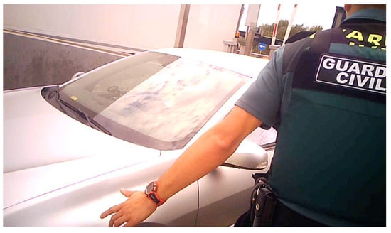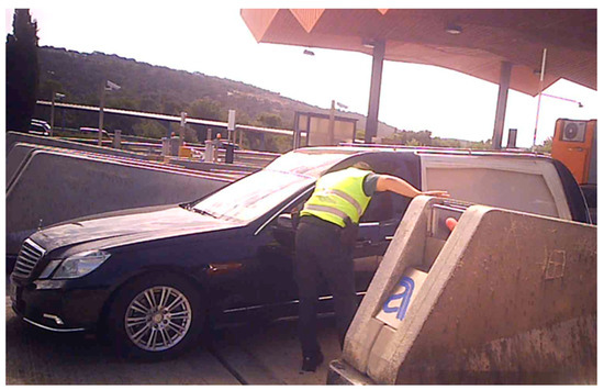 A police officer stops a hearse at the AP-7 tollbooth (authors’ data collection).