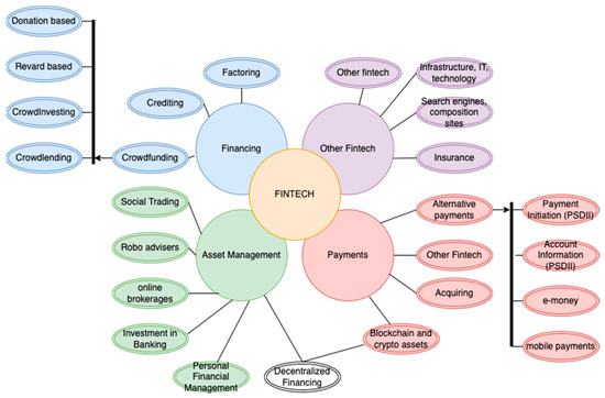Since the research object of this article is Fintech, and the purpose of defining the critical elements of the financial institutions’ readiness for Fintech, the authors should describe the Fintech types. The authors classified the types of Fintech, and they are represented in the tree diagram (see Figure 1).