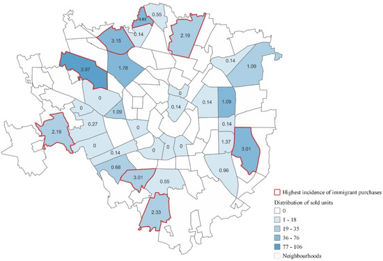 Distribution of sold units and incidence of immigrant purchases.