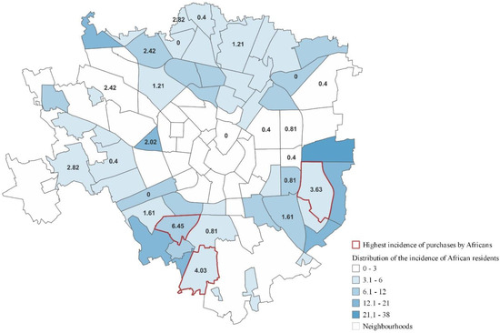 Distribution of African residents and incidence of purchases by Africans.