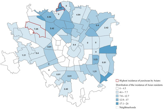 Distribution of Asian residents and incidence of purchases by Asians.