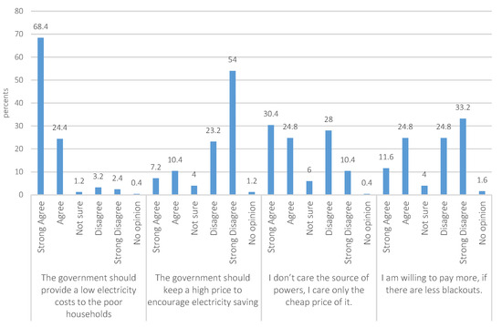 Interestingly, Table 7 shows that all respondents believed that the household’s electricity bill would increase if the share of renewable energy rose to 75.6%. Renewable energy machines are usually calculated based on their maintenance and repair costs.
