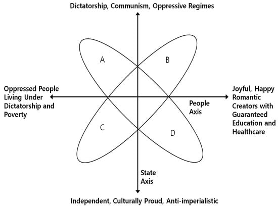 () defines space as not only physical landmarks but also places where multiple actors interact daily, implying a multiplicity of identities that are constantly changing and constructive. They can refer to the structural systems of synchronicity or describe the multi-dimensional space of identity. Similarly, the concept of the North for Koreans is constructed through the interactions of many actors, resulting in a complex and layered imagined space whose meaning is shaped by the speaker’s intention and related agenda. When combined with specific policies, the implications of this concept become more diverse, variable, and constructive ().