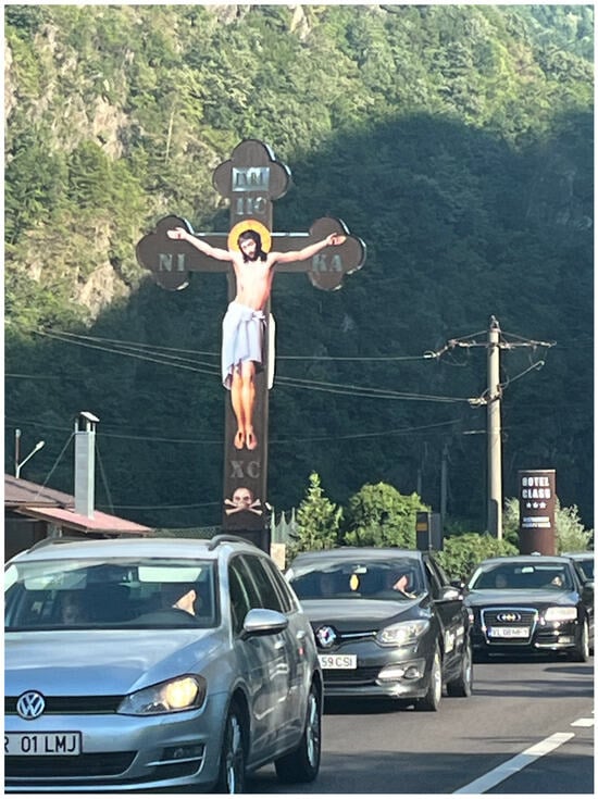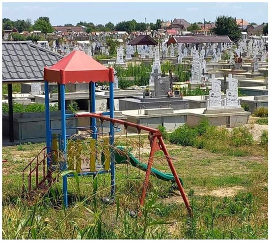 The non-separation of death culture, Orthodox Christianity, and state institutions remains a feature of contemporary Romania; their intersections are constantly reinterpreted theoretically and recoloured politically (Bănică and Mihăilescu 2017; Roudometof 2010; Stan and Turcescu 2007; Toplean 2015, 2018, 2021). Intricacies are not discussed here, but the tension between two contrasting historical processes is acknowledged: a generation-long forced de-traditionalisation under communism and an encouraged nostalgic return to traditions overlapping with rapid globalisation and under-accomplished democratic measures under post-communism. Such dissonant tensions are less noticeable in statistics, but noticeable in “informal rules” (Brown 2009, p. 580; Patapievici 2015, pp. 207–18) (Figure 1).