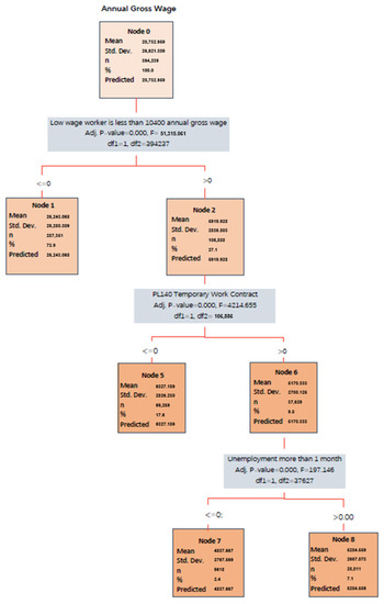 The underlying objective is to describe the main characteristics of precarious workers. Having identified precarious workers in the first part of this empirical analysis, the main characteristics of precarious workers in terms of age, gender, education, professional experience, industry sector, occupations, social status, etc., are described. By using classification tree analysis (CTA), the divisional characteristics of the group of precarious workers are defined. As a next step, the factors that affect (a) the labour income of the precarious workers and (b) the likelihood of a worker becoming precarious are identified.