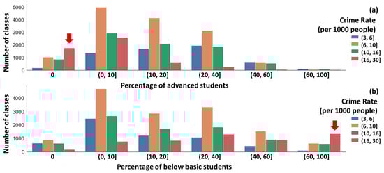 | Population Density (people/km2) | Approximate Number | Total Offenses Cases | Approximate Number | Percentage of Advanced/Below-Basic Students | Approximate Number |