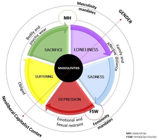 Although mining has positioned Chile as a world leader, a less researched counterpoint is the impact associated with the high physical and psychological demands that the organization of the industry places on workers and the consequences that this has on family dynamics. The specific interest of this study is to contribute to the understanding of the experience of Chilean men working in large-scale mining regarding the construction of masculine habitus in their work and affective interactions. The question is, how does the male miner (MH), under a network of masculine mandates in his work environment, construct or deconstruct his habitus of being a man in his body, emotions, and sex-affective interactions?