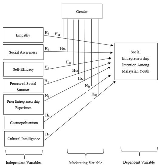 - In the social entrepreneurship context, entrepreneurs may need to solve social issues from different cultures, such as helping refugees or engaging with different ethnicities for heritage conservation, educating others for cultural preservation, and many more. Thus, cultural intelligence is seen as another dimension that can influence the formation of social entrepreneurship intention in an individual. Precisely, someone who is culturally intelligent might be more inclined towards social entrepreneurship. Thus, it is proposed: