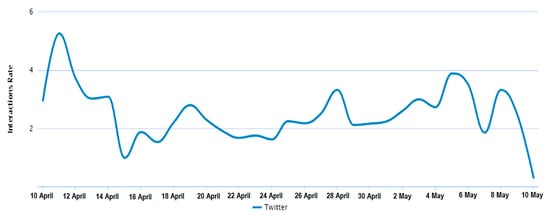 The trend in Figure 1 shows a fluctuating dynamic, with several high points recorded on 11 April 2020, 5 May 2020, and 8 May 2020.