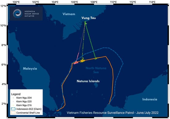 Track of VFRS between June and July 2022. Source: Indonesian Ocean Justice Initiative (IOJI 2022a).