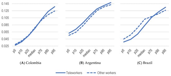 | 12 | According to the literature review, this study takes the definition of teleworkers as those who practice “the use of ICT—such as smartphones, tablets, laptops and desktop computers—for the purposes of work outside the employer’s premises” (MarcadorDePosición3) Page 5, and it is measured according to (Oviedo-Gil and Cala 2022). According to estimates, in 2021, 6.6% of all urban workers were teleworkers in Colombia, 8.4% in Argentina, and 5.5% in Brazil. |