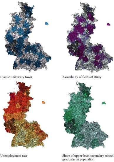 - Weßling, Katarina, and Nora Bechler. 2019. Where do regional influences matter? The impact of socio-spatial indicators on transitions from secondary school to university. Review of Regional Research 39: 163–88. [Google Scholar] [CrossRef]